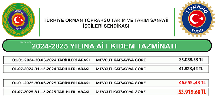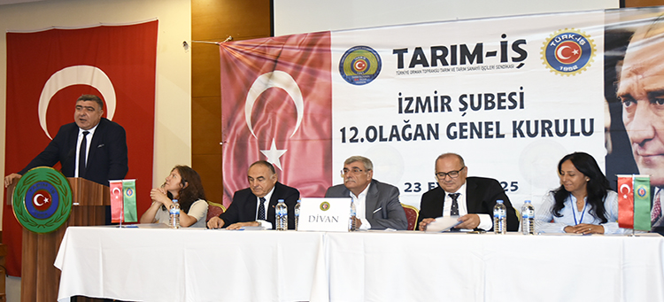 SENDİKAMIZ İZMİR ŞUBESİ 12. OLAĞAN GENEL KURULU TAMAMLANMIŞTIRTarım-İş Sendikası İzmir Şubesi 12. Olağan Genel Kurulu 23 EYLÜL 2025 Salı günü Ege Üniversitesi Kampüsü Erzene Mahallesi BORNOVA/İZMİR adresinde bulunan Anemon Ege Sağlık Hotel Toplantı Salonunda yapıldı. Başkanlık ve yönetim organları için tek aday listenin girdiği seçimlerde mevcut şube Başkanı Zafer ŞİŞMANLAR ve listesi seçimi kazanarak güven tazeledi. ... |